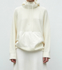 Confectionné en france dans une pure laine vierge, ce pull en maille fine à capuche tricoté dans un point vintage adopte une coupe oversize pour une silhouette décontractée. il se caractérise par sa large poche ventrale en matière kway et ses cordons à la capuche et en bas de corps.